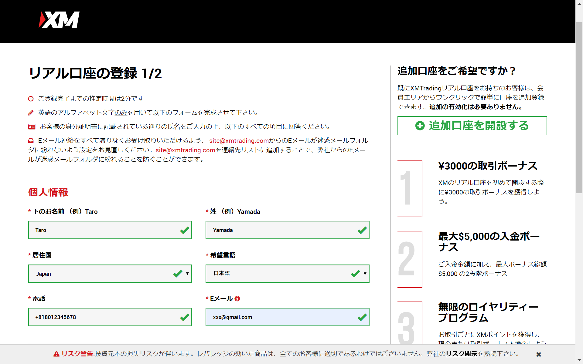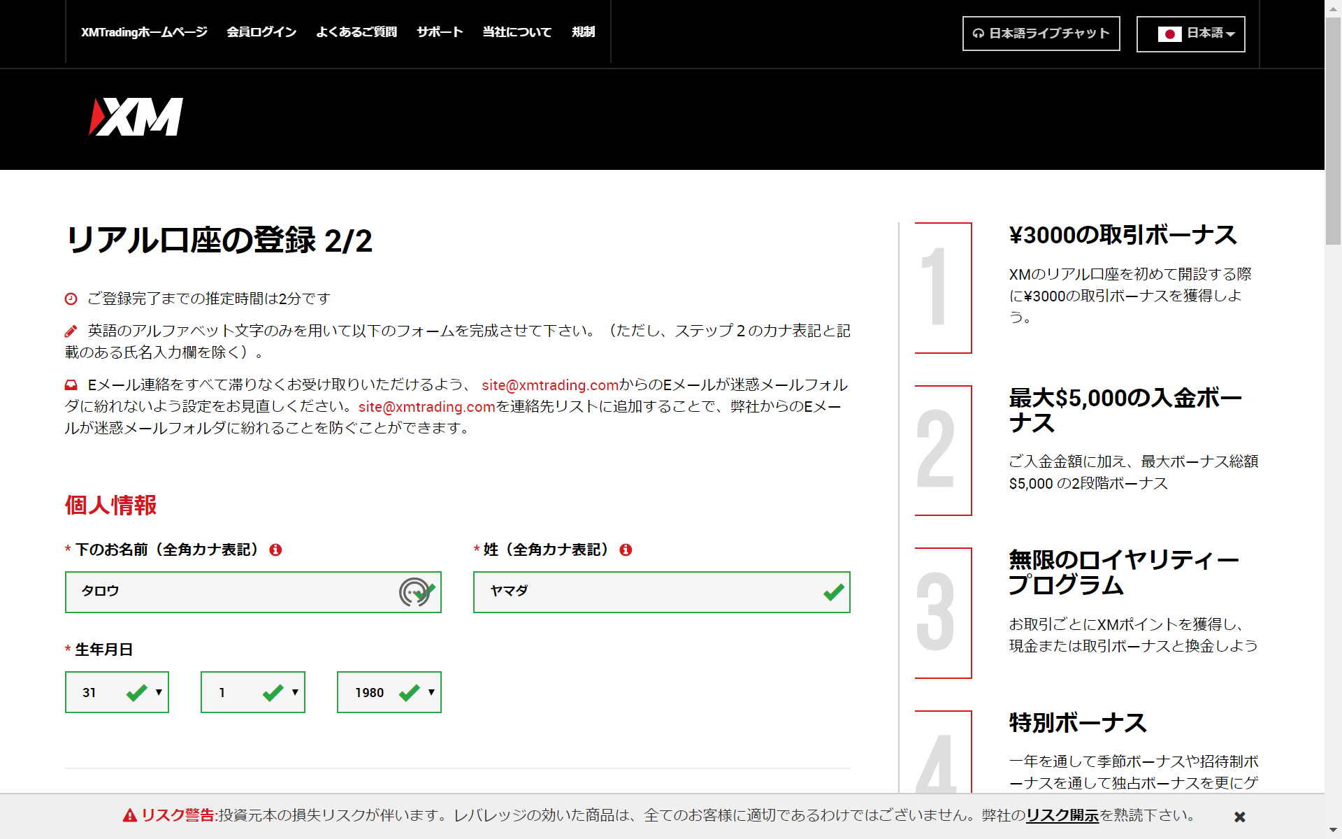 Trading PlatformsMT5 (Forex as well as CFD's on stocks, indices, metals and energy) Select - Enter personal information (name in kana, date of birth).
