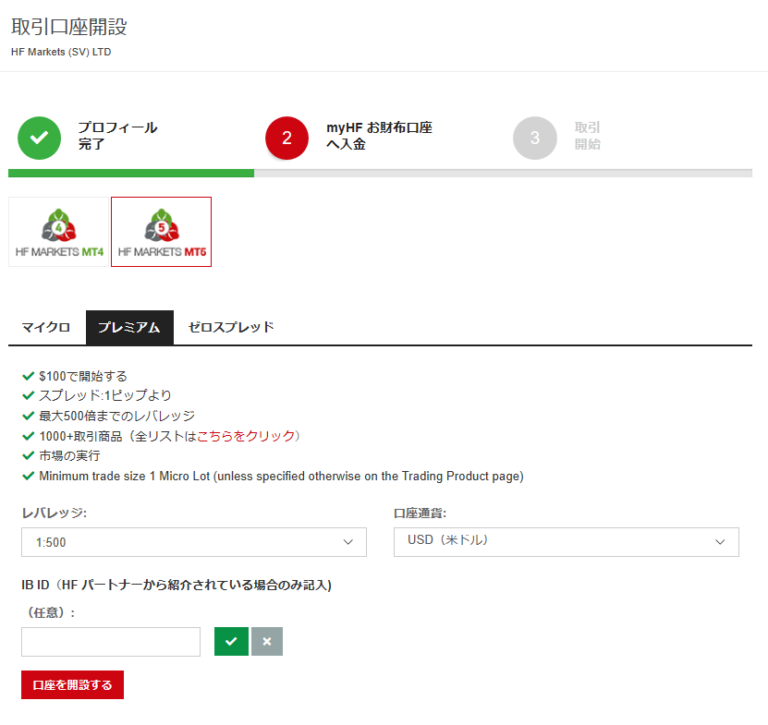取引口座開設のページに遷移するので、「HF MARKETS MT5」を選択します。