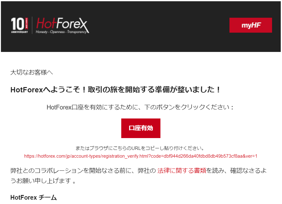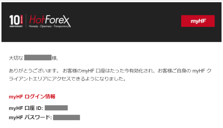※口座有効化のお知らせメールが送付され myHF ID、myHF パスワードが送付されます。