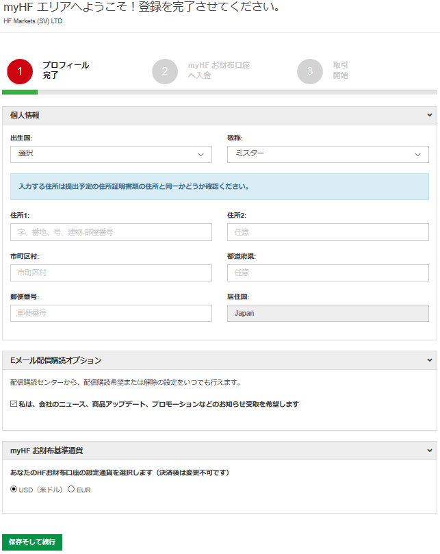 | 居住国 | Japan | 初期値は「Japan」に設定されています。 |