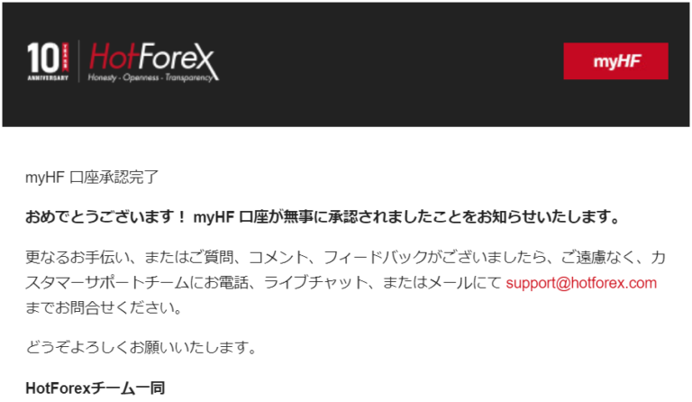 承認された場合、口座が承認されたことを通知するメールが届きます。