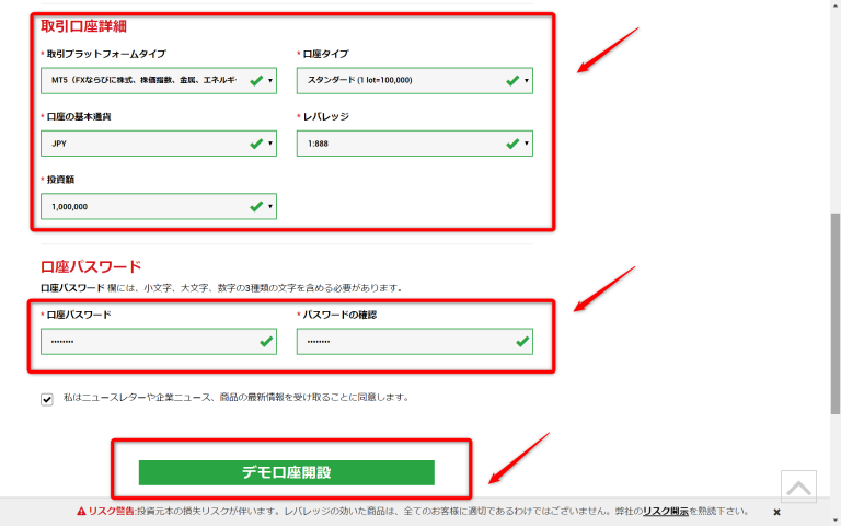 - デモ口座登録ページを開きます。