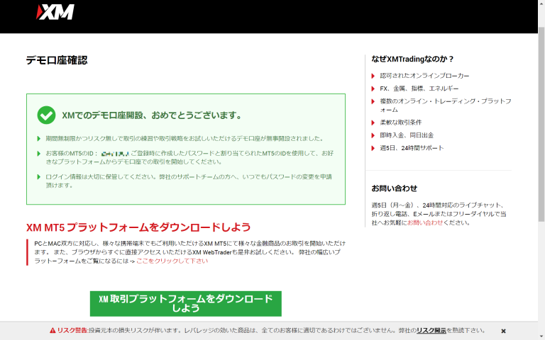 - デモ口座が開設されました。