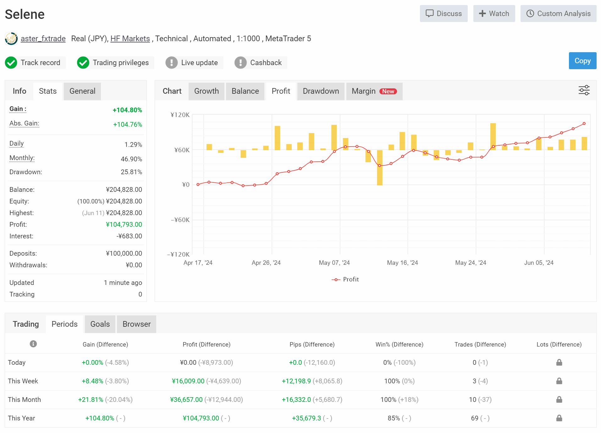 2024年4月16日に運用を開始し、2ヶ月弱で年利100%を達成しました!