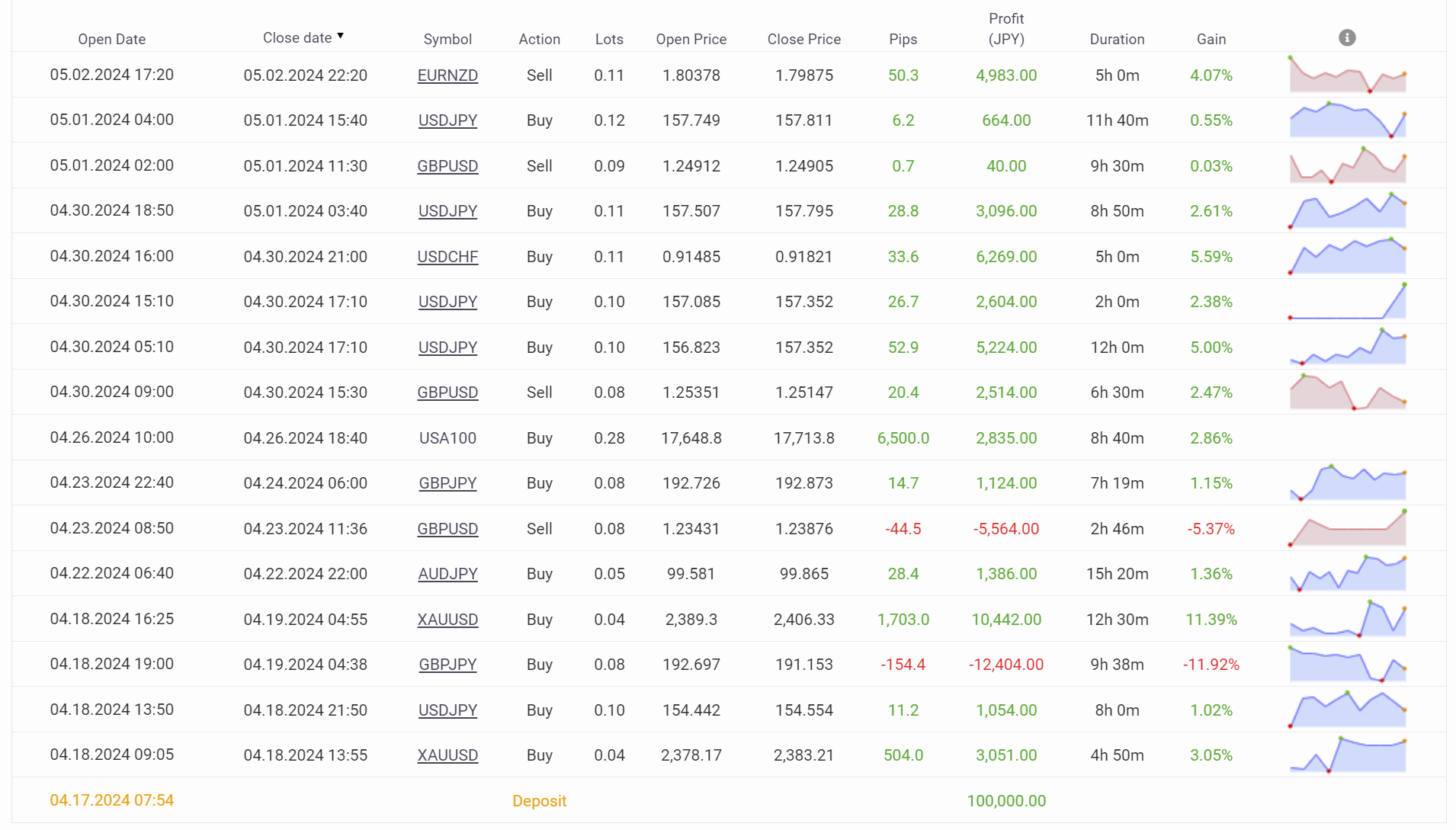 2024/04/16から運用を開始し、結果はMyfxbookで公開しています。