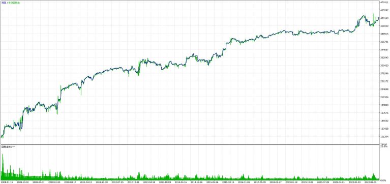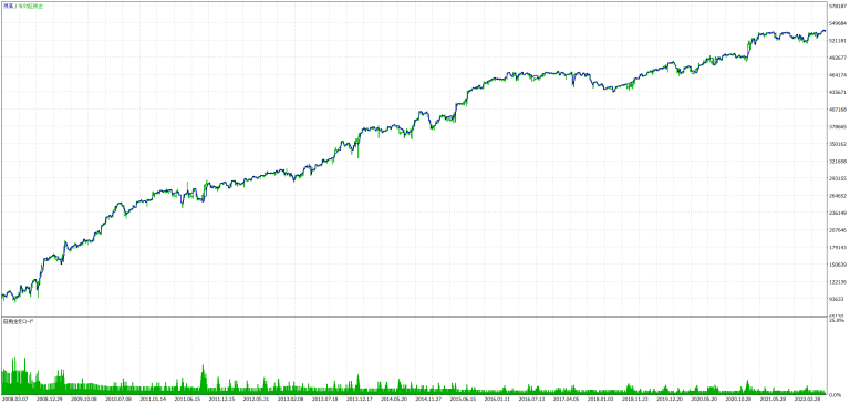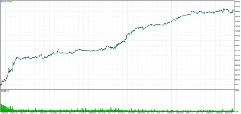 - 複利での運用においては、期間が長くなるほど複利の恩恵を大きく受けるため、バックテストの成績は非常に大きな収益を記録していますが、