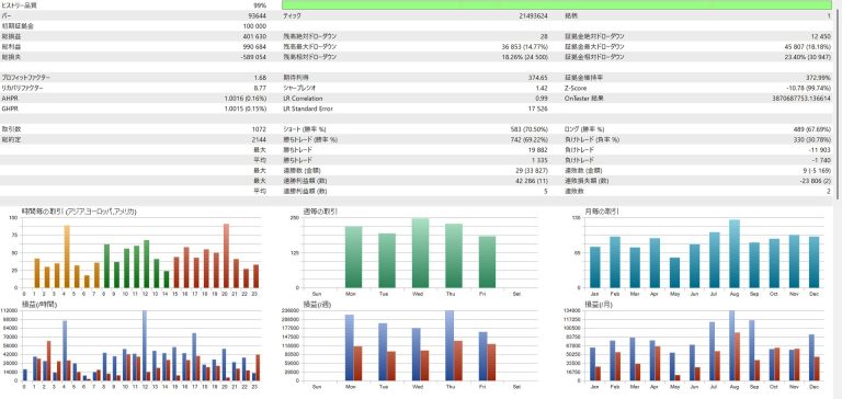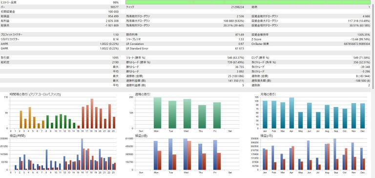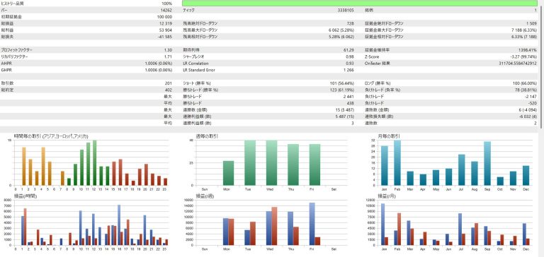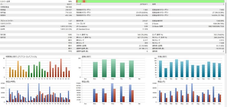 ポジションの保有時間は平均で2~3日程度となっており、自動売買ツールとしては比較的長めの期間でトレードを行います。