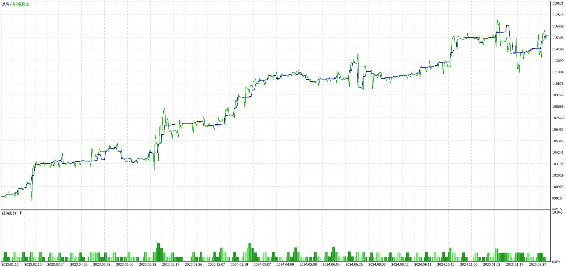 | 資金管理モード | ・複利 (マージン固定) ・複利 (リスク%固定) ・単利 |