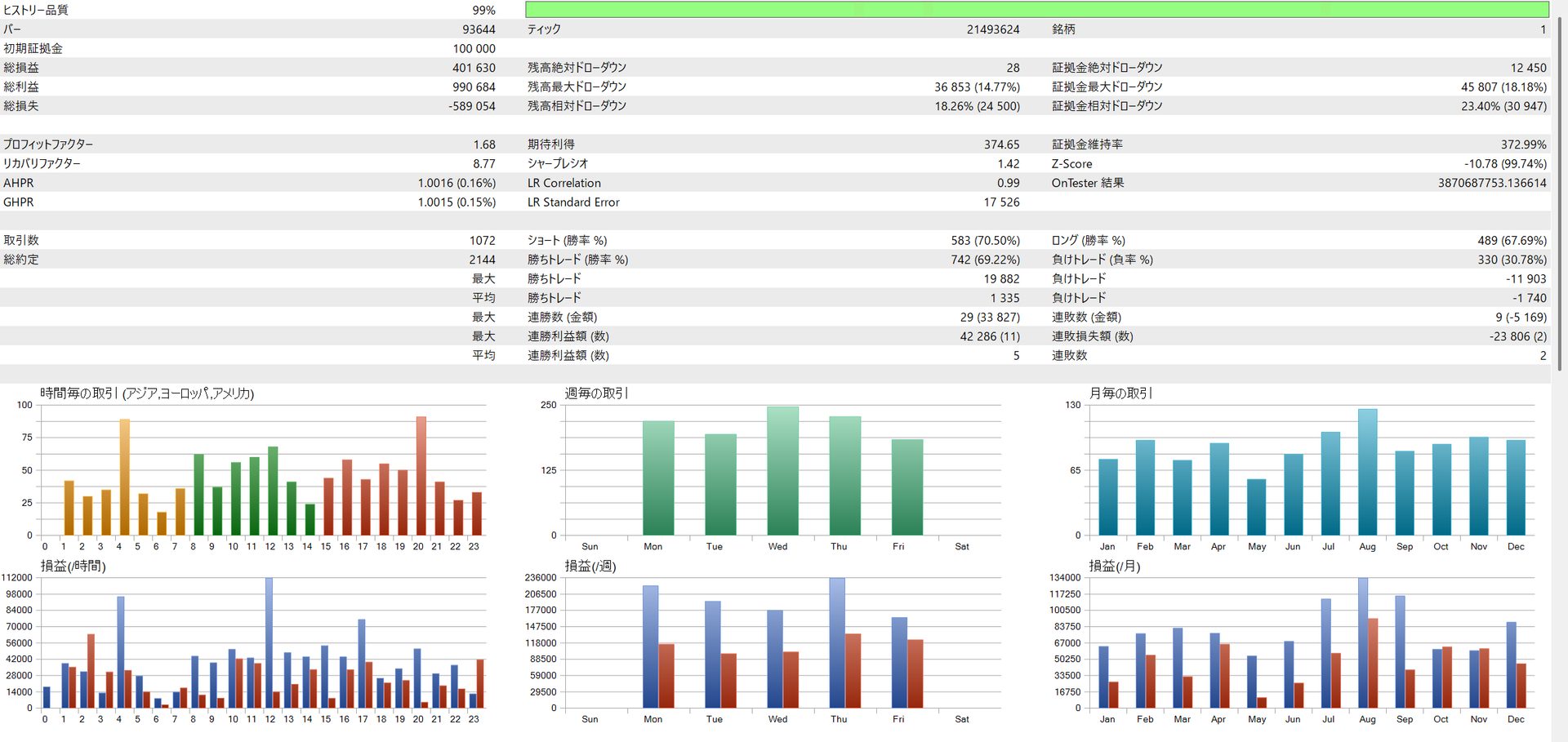 | EURCHF | 401,630円 | 18.18% | 1.68 | 8.77 | 69.22% |