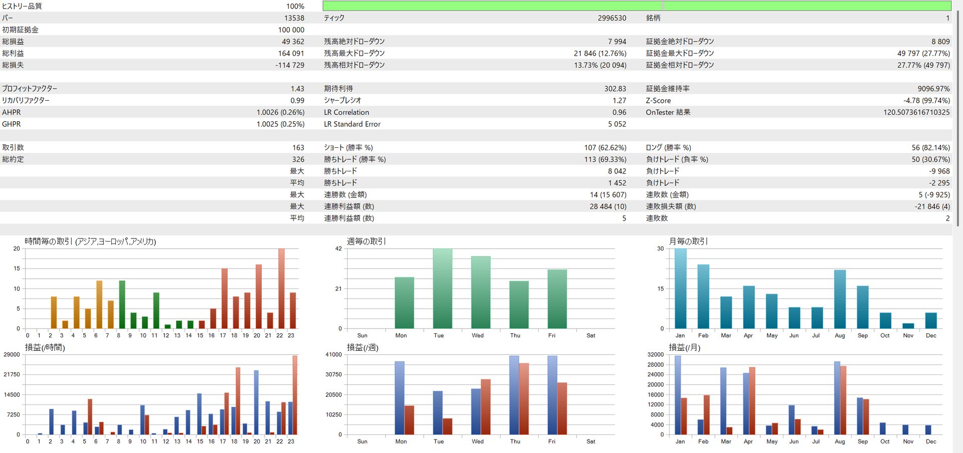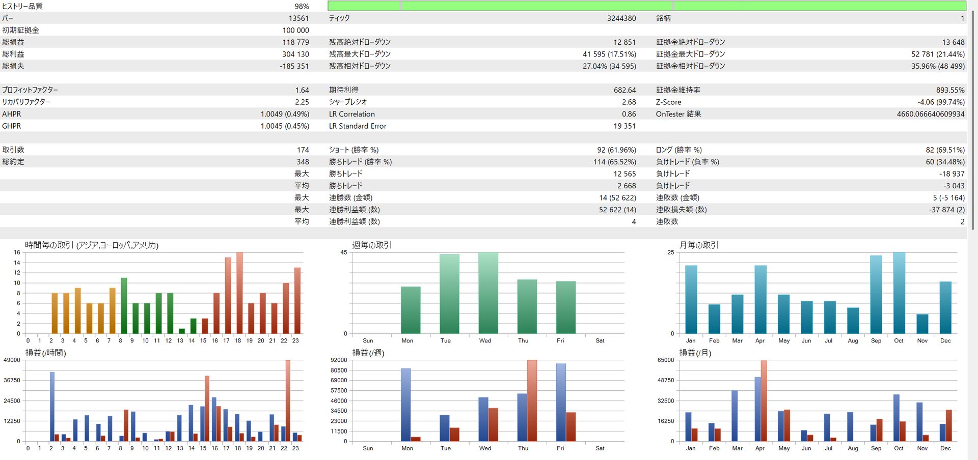 | EURJPY | 335,112円 | 17.58% | 1.50 | 9.61 | 73.39% |