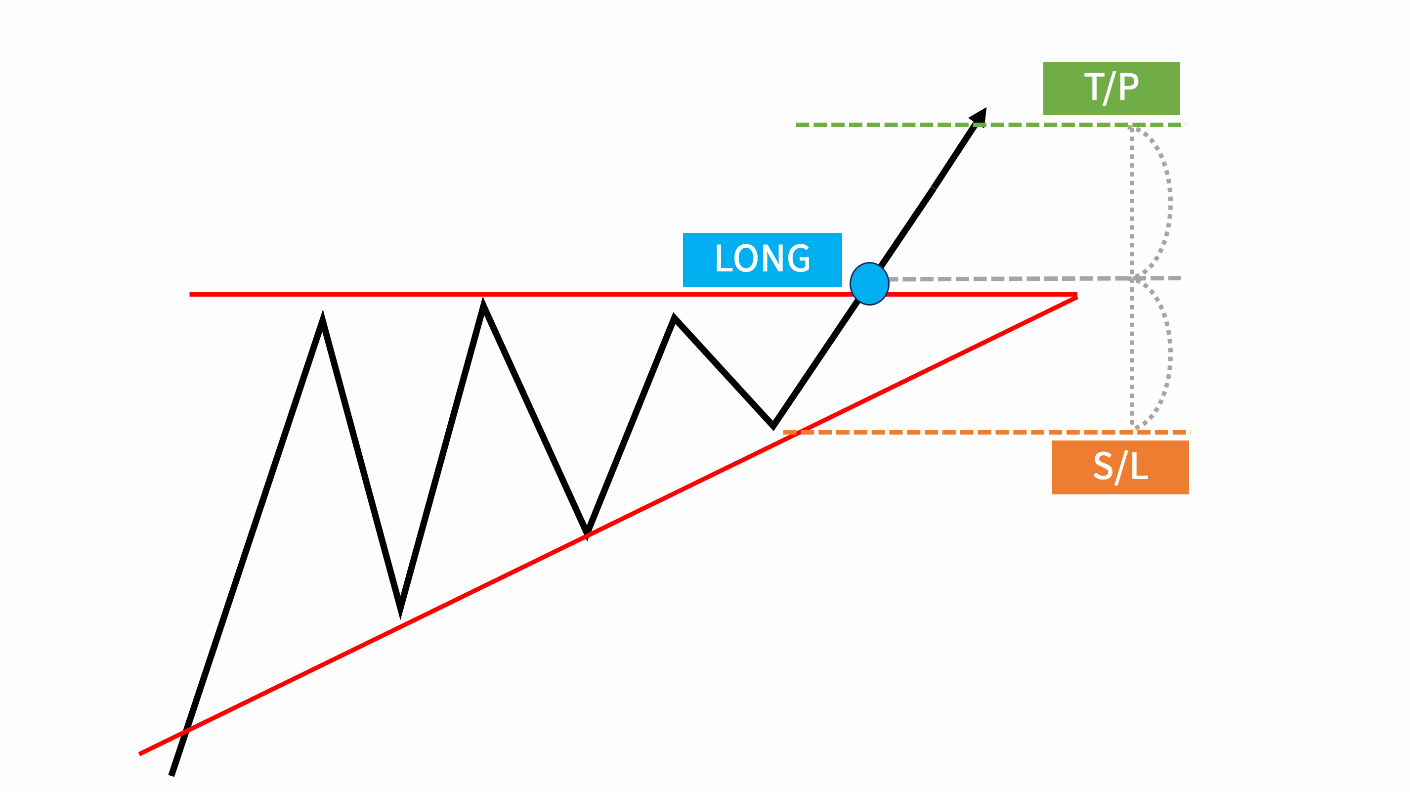 上辺を上抜けた場合は反転上昇の可能性が高いため、ロングでのエントリを検討します。