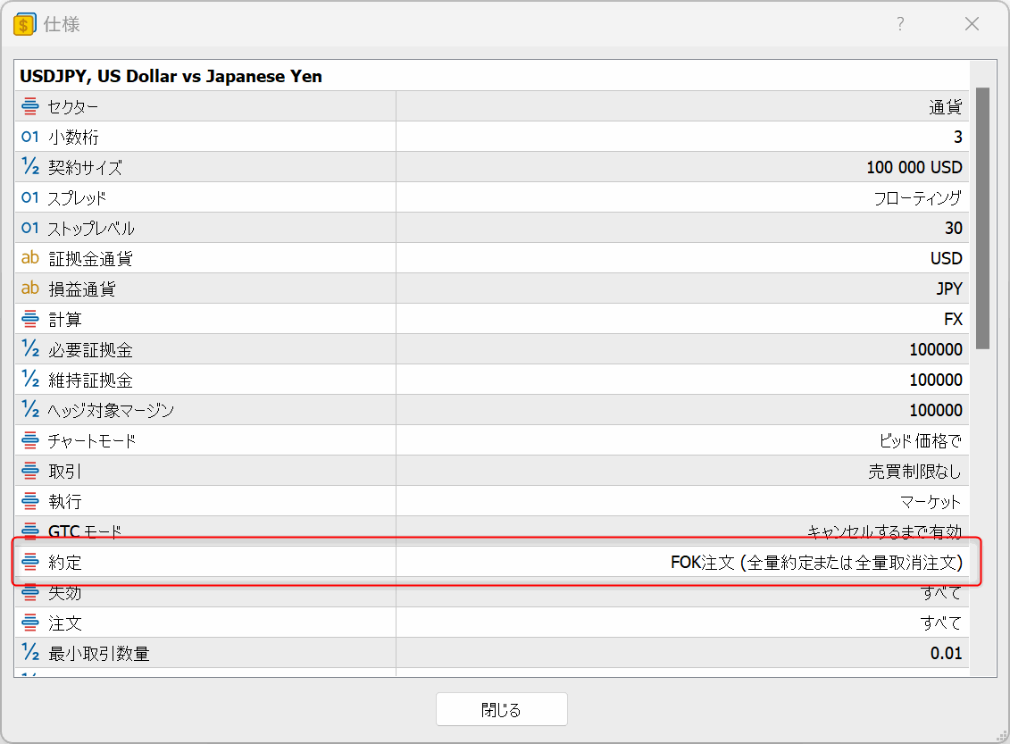 | フィルポリシー | FOK | IOC | Return | FOK | |
