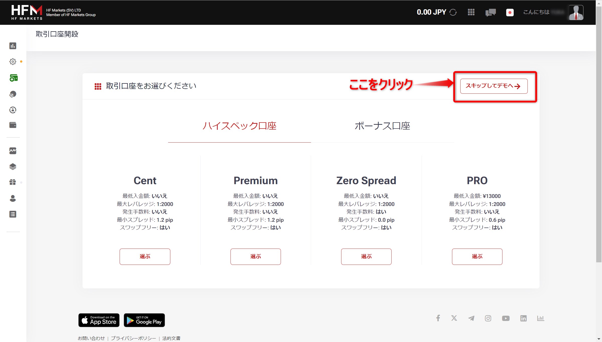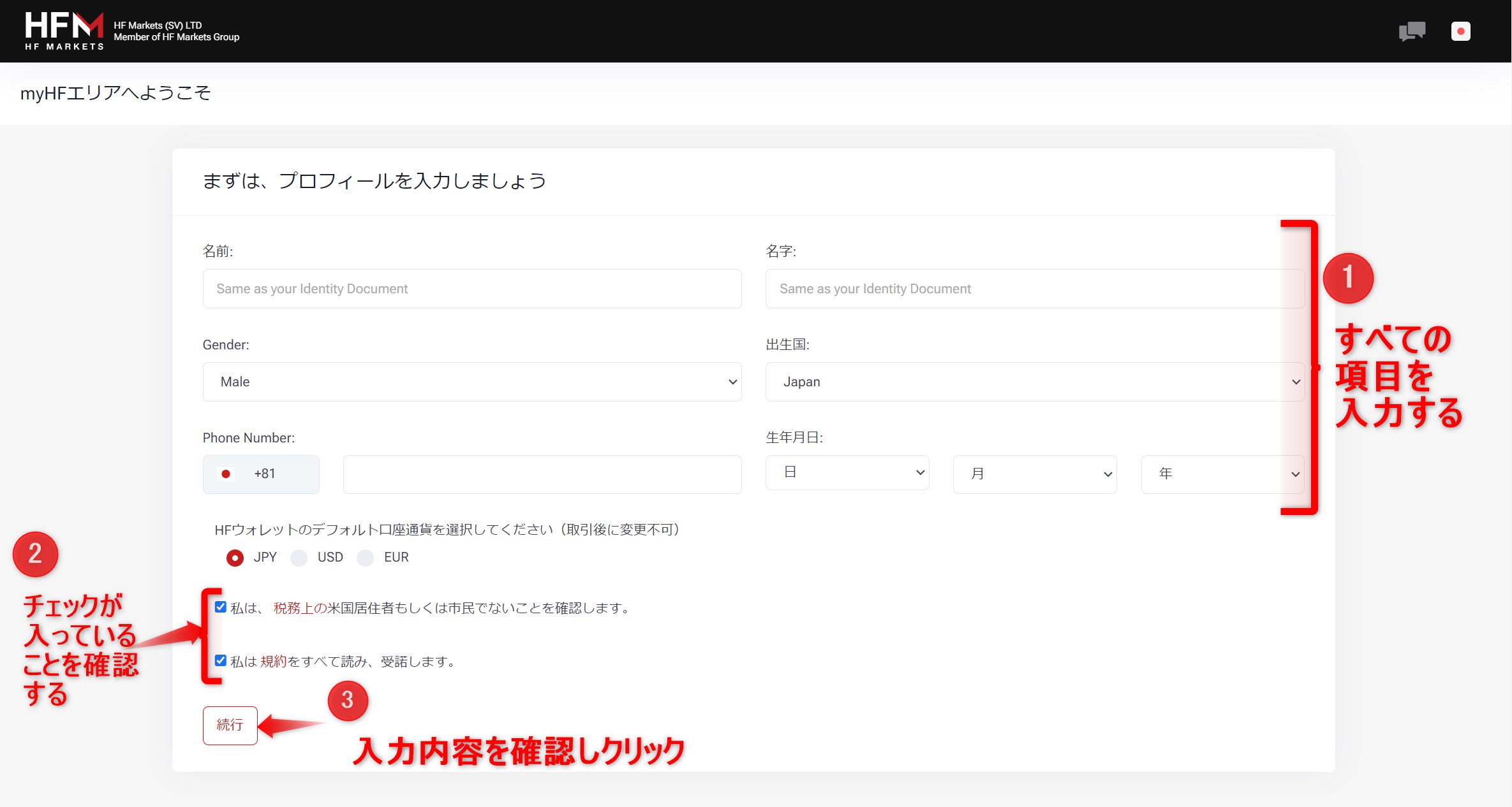 ②HFMのアカウントを作成します。