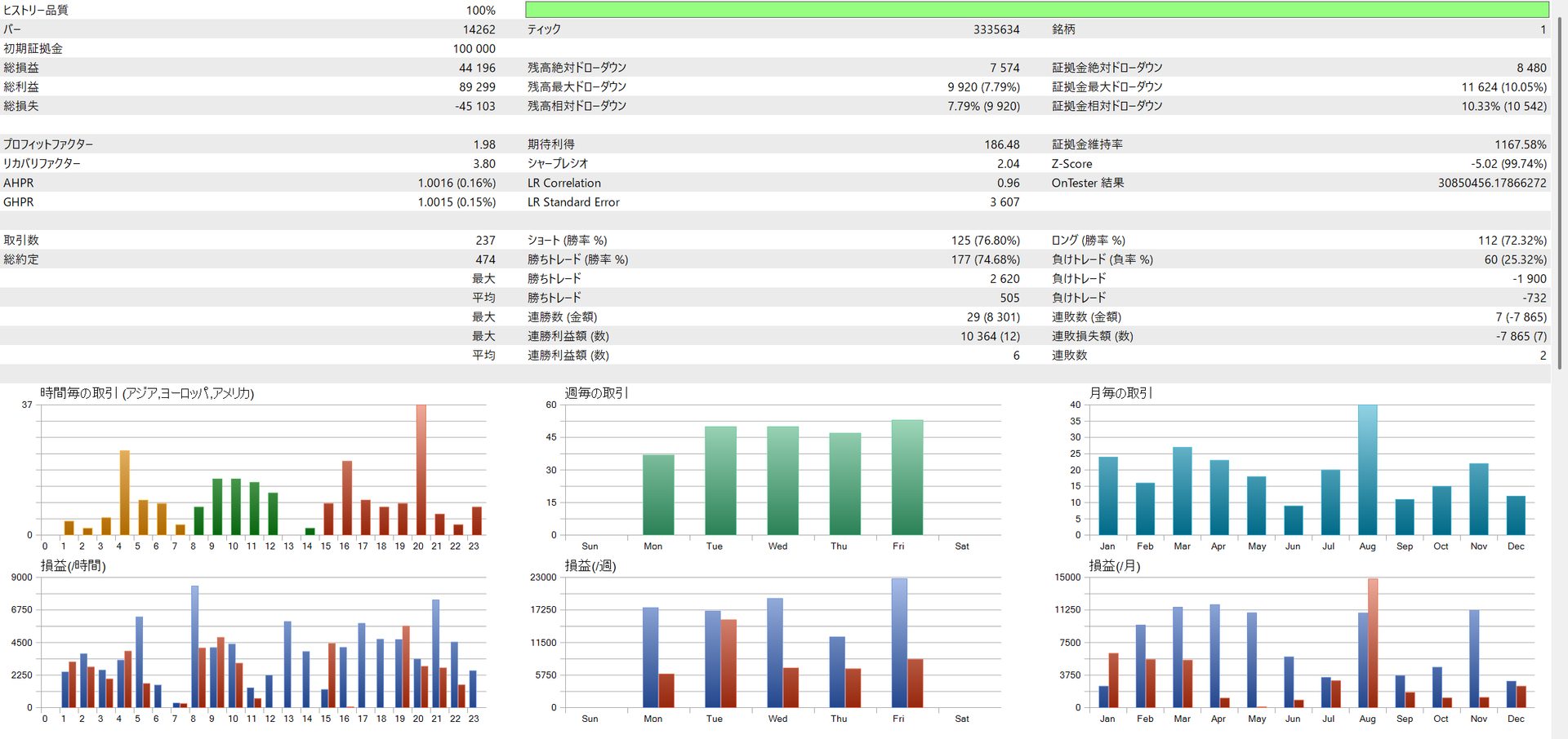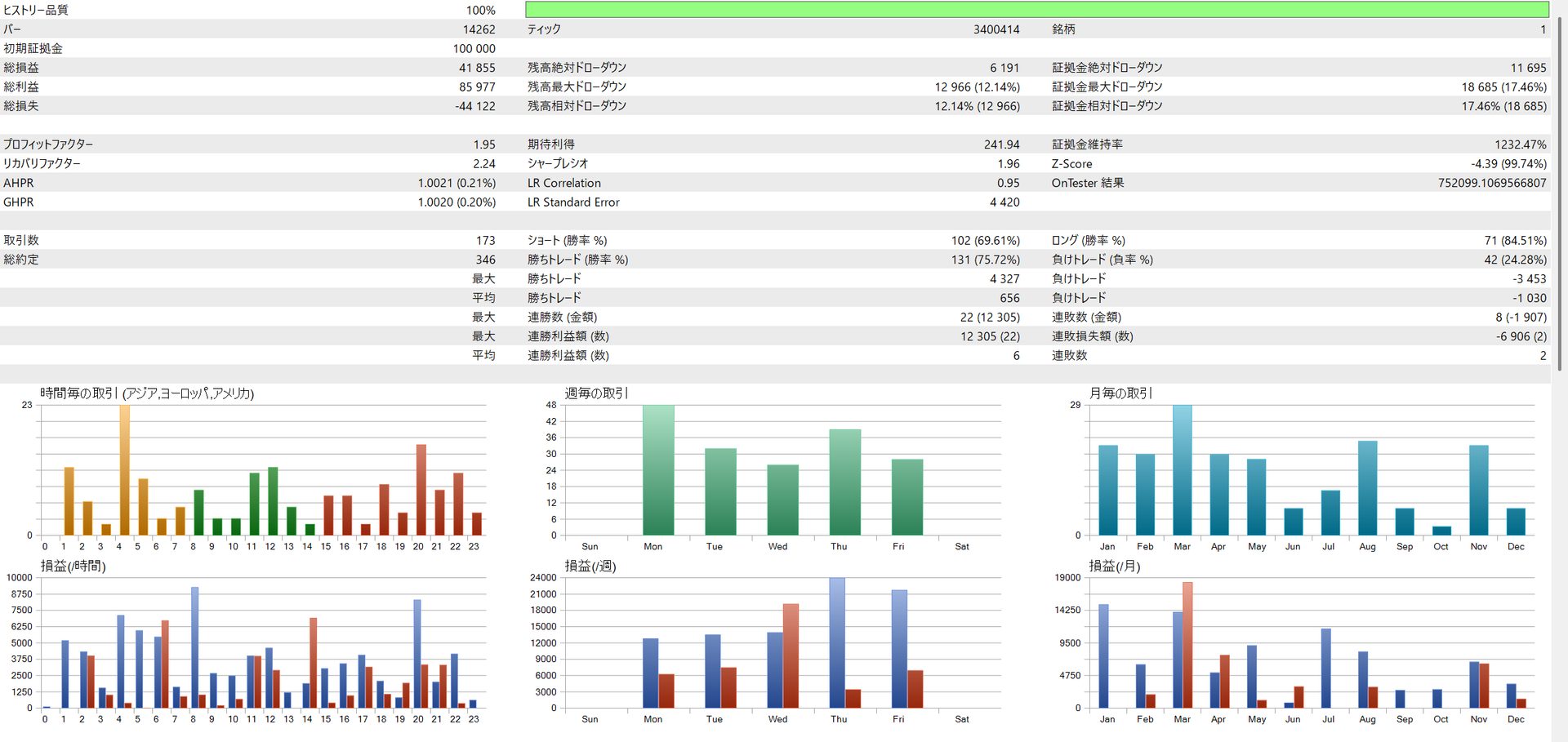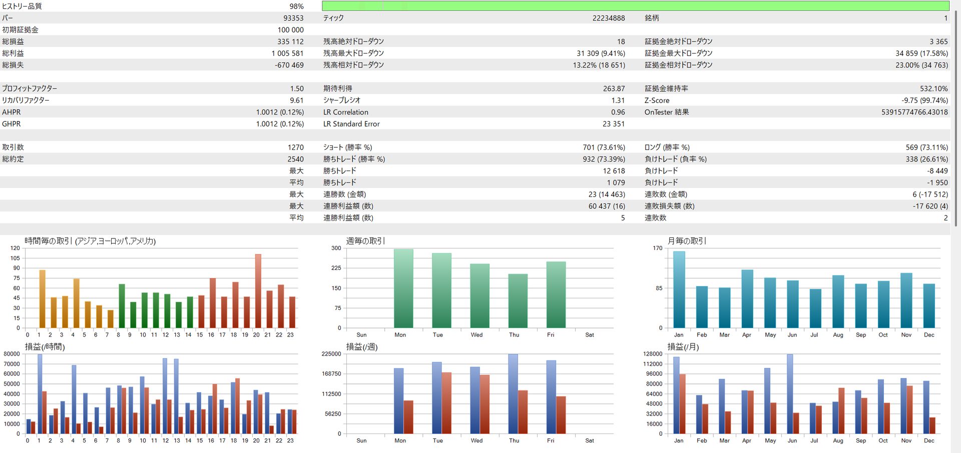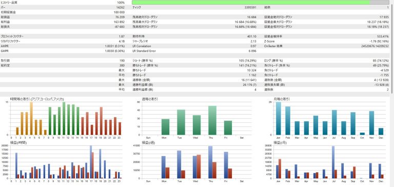 | EURJPY | 335,112 yen | 17.58% | 1.50 | 9.61 | 73.39% |
