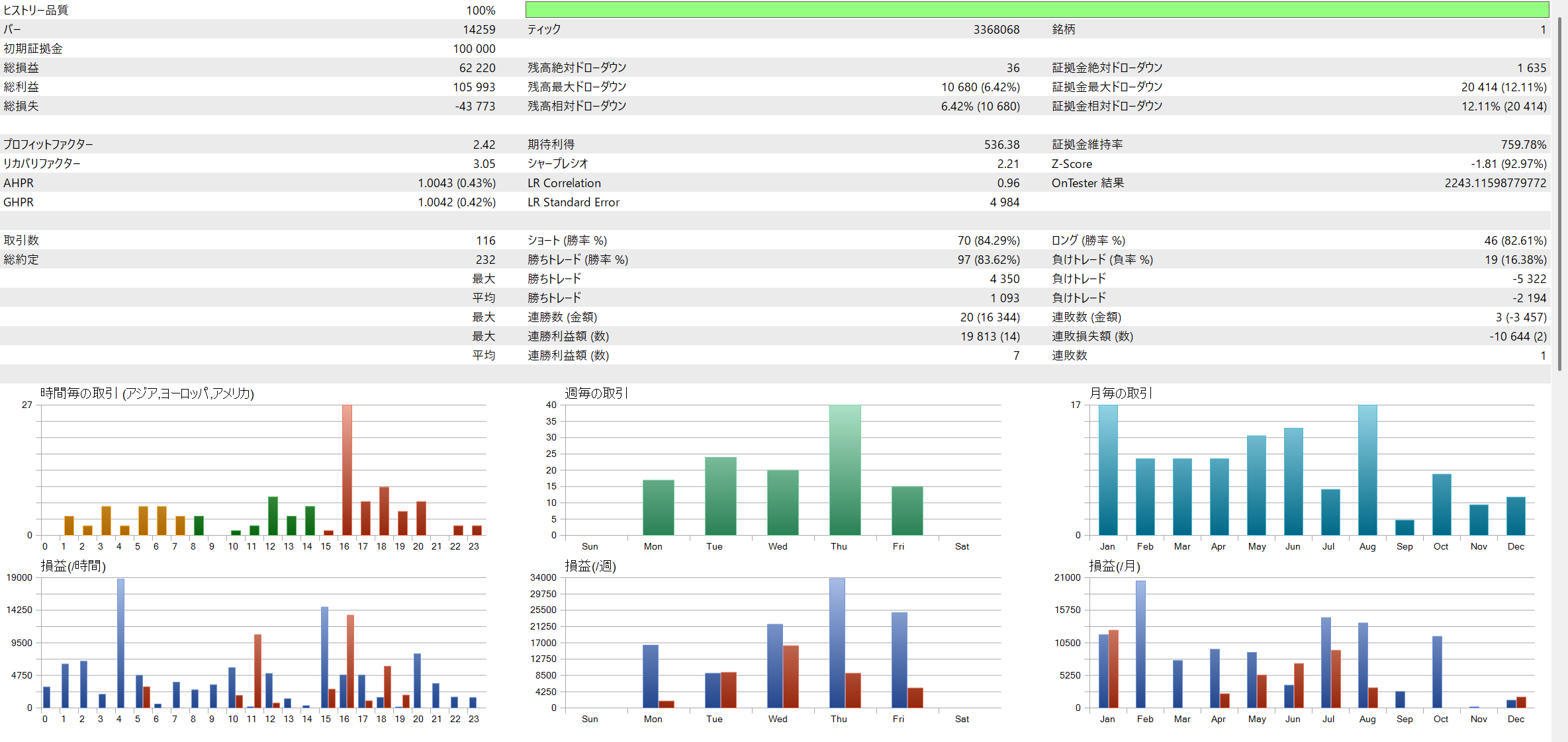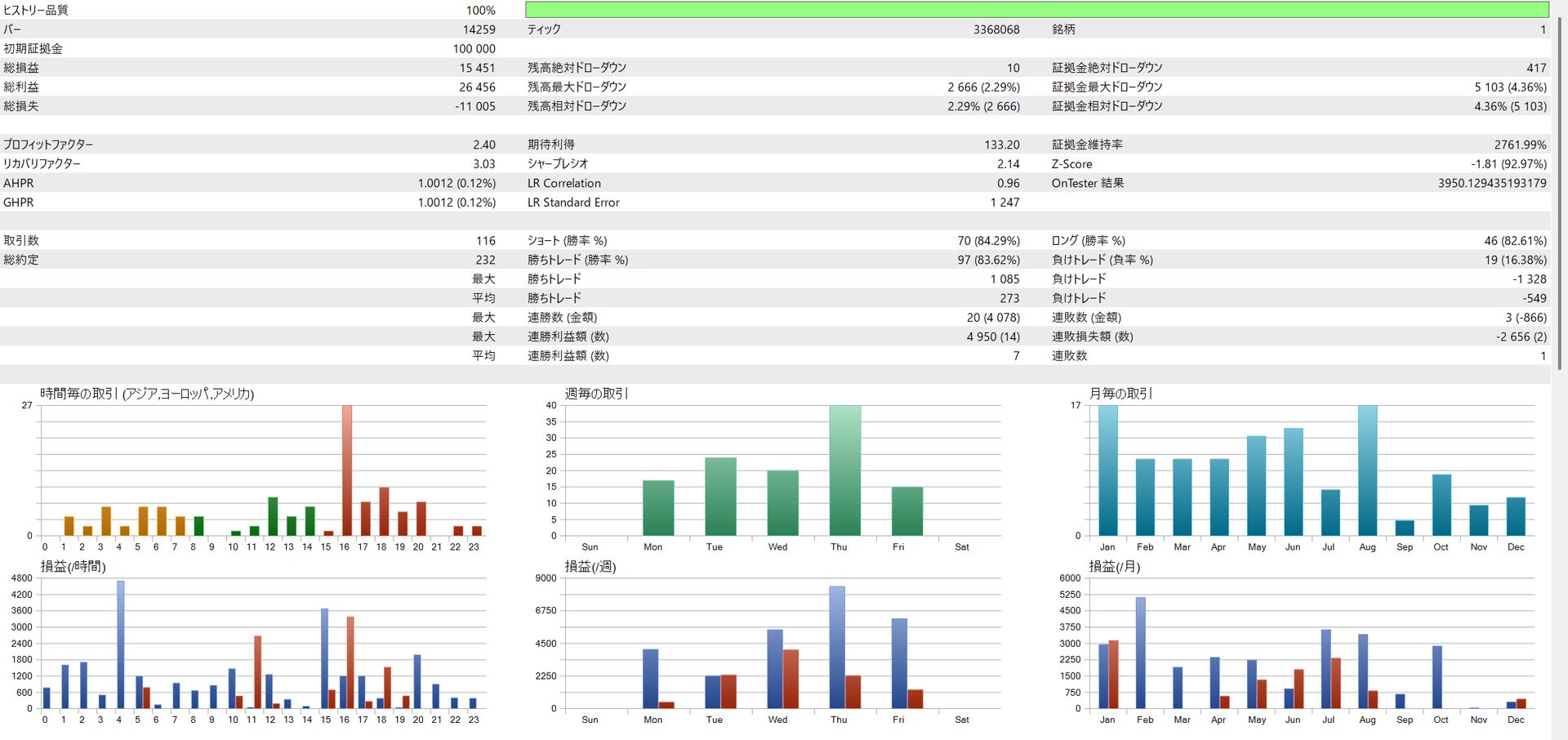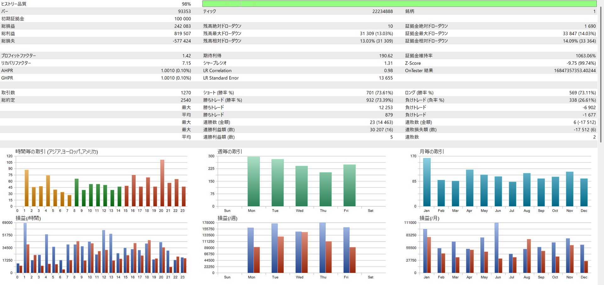 | EURJPY | 335,112 yen | 17.58% | 1.50 | 9.61 | 73.39% |