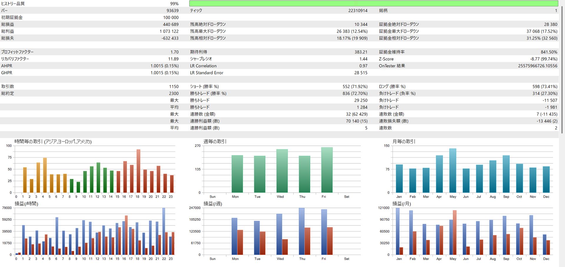 | GBPJPY | 440,689 yen | 17.52% | 1.70 | 11.89 | 72.70% |