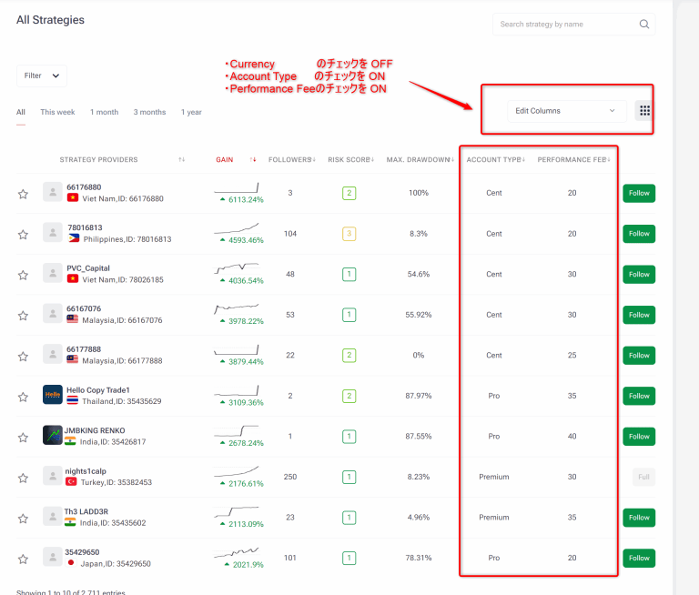 - Once you have decided which strategies to copy, click the "Follow" button.