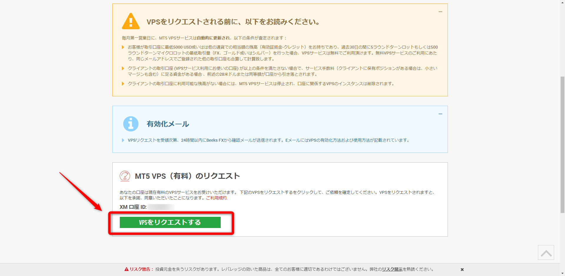 XM会員ページから申込みを行います。