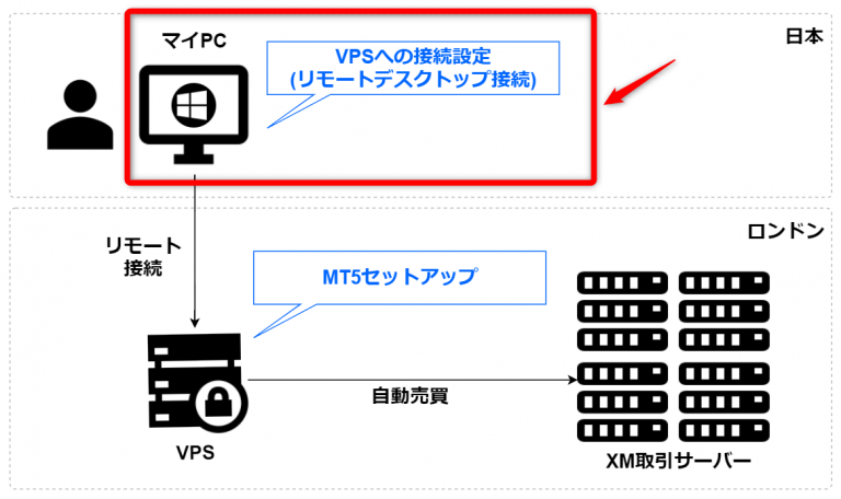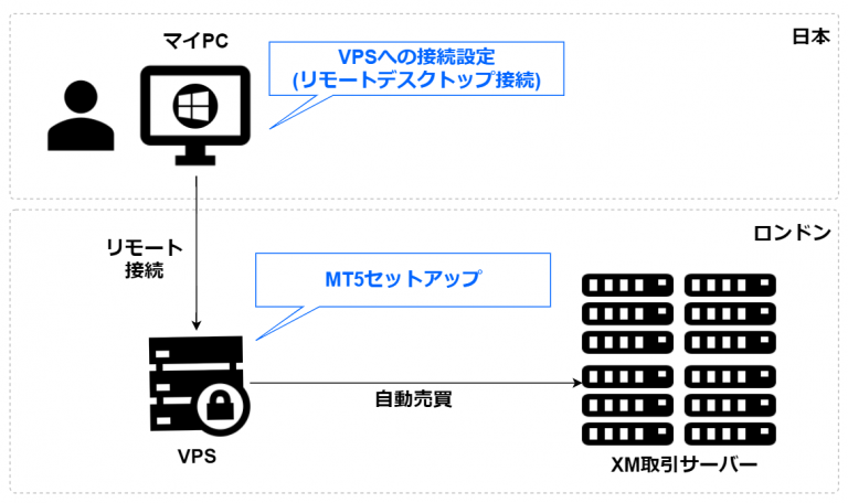 - 手元のPCからVPSへ接続し、EAの動作環境を設定します