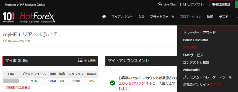 ただし、HotForex社が提供するVPSの無料使用条件にあるトレード量に関しては、HotForex口座での取引量のみがカウントされます。
