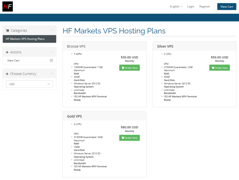 幸い、HotForex社のVPSはシルバープラン以上の、若干スペックが高いプランも選択可能になっており、この点はXMには無いメリットになります。